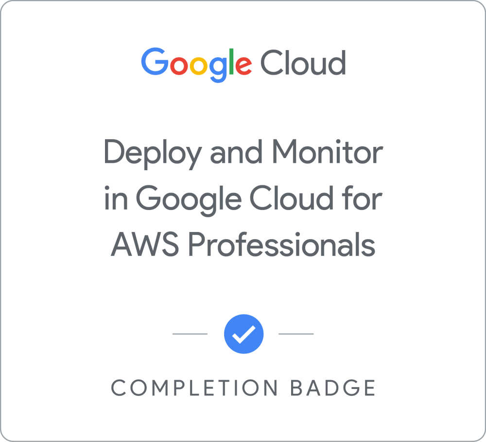 Deploy and Monitor in Google Cloud for AWS Professionals Earned Jul 5, 2023 EDT