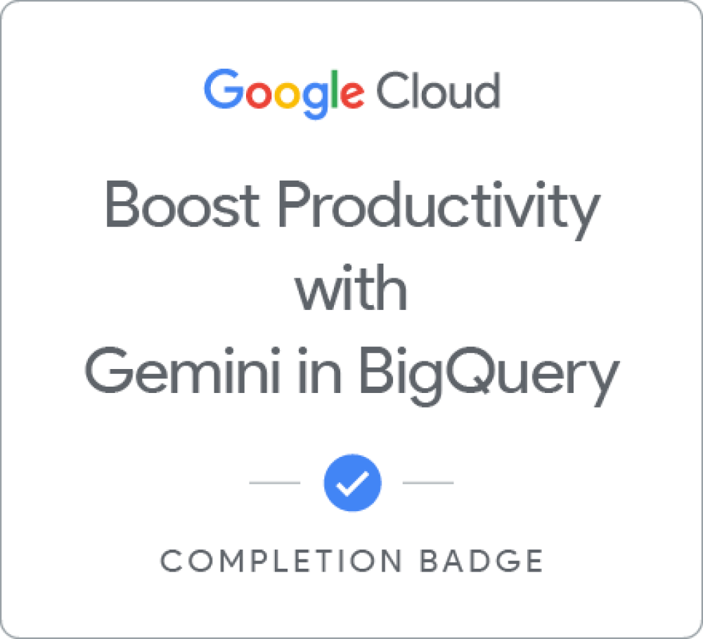 This course explores Gemini in BigQuery, a suite of AI-driven features to assist data-to-AI workflow. These features include data exploration and preparation, code generation and troubleshooting, and workflow discovery and visualization. Through conceptual explanations, a practical use case, and hands-on labs, the course empowers data practitioners to boost their productivity and expedite the development pipeline.