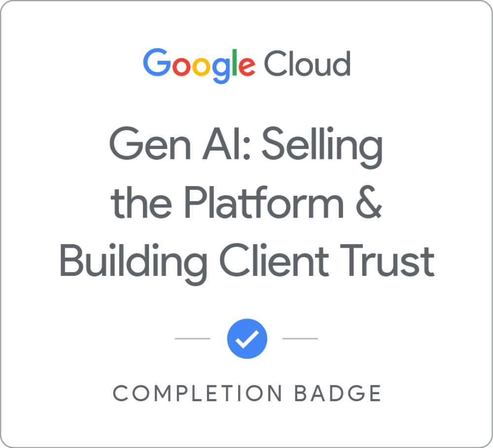 Earn a skill badge by completing the Introduction to Generative AI, Introduction to Large Language Models and Introduction to Responsible AI courses. By passing the final quiz, you'll demonstrate your understanding of foundational concepts in generative AI. A skill badge is a digital badge issued by Google Cloud in recognition of your knowledge of Google Cloud products and services. Share your skill badge by making your profile public and adding it to your social media profile.