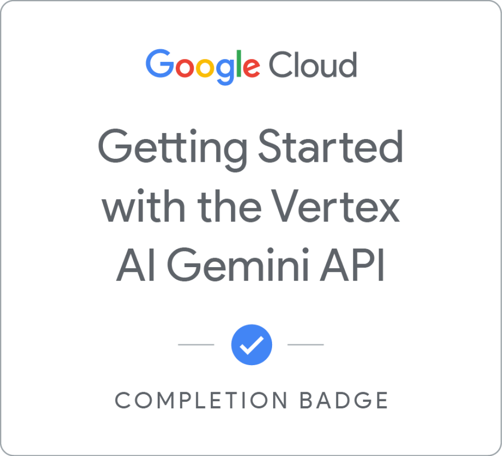 Getting Started with the Vertex AI Gemini API Earned Jun 15, 2024 EDT