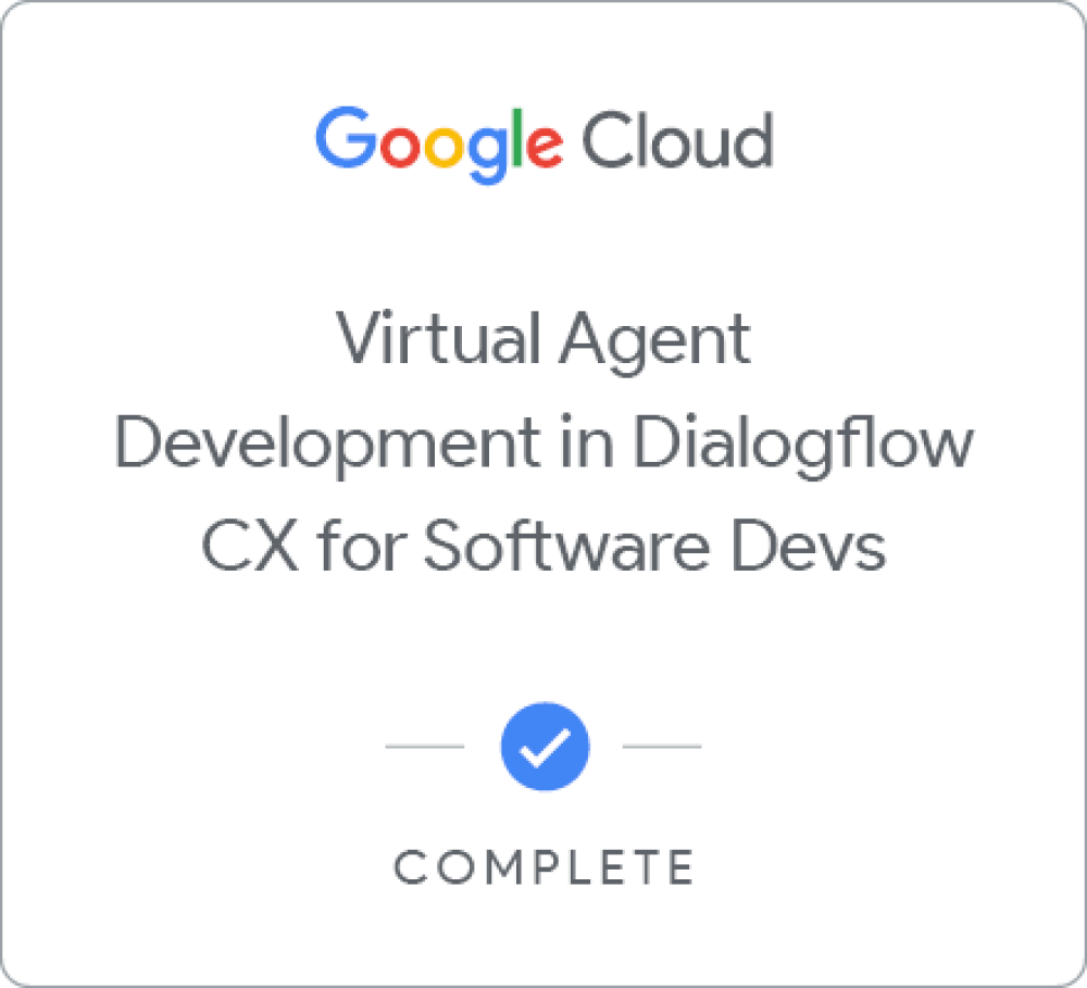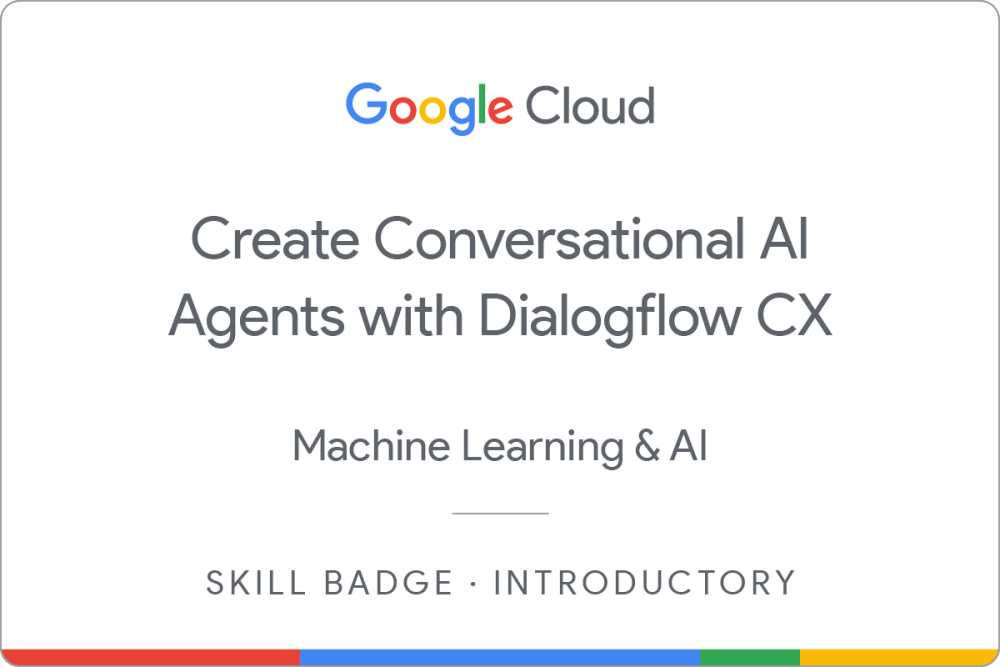 Earn a skill badge by completing the Create Conversational AI Agents with Dialogflow CX quest, where you will learn how to create a conversational virtual agent, including how to: define intents and entities, use versions and environments, create conversational branching, and use IVR features. A skill badge is an exclusive digital badge issued by Google Cloud in recognition of your proficiency with Google Cloud products and services and tests your ability to apply your knowledge in an interactive hands-on environment. Complete this skill badge quest, and the final assessment challenge lab, to receive a skill badge that you can share with your network.