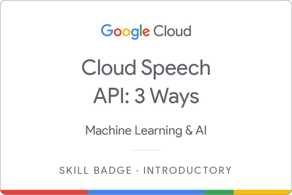 Earn the Introductory skill badge by completing the Cloud Speech API: 3 Ways course, where you learn how to use speech related API tools to synthesise and transcribe speech.