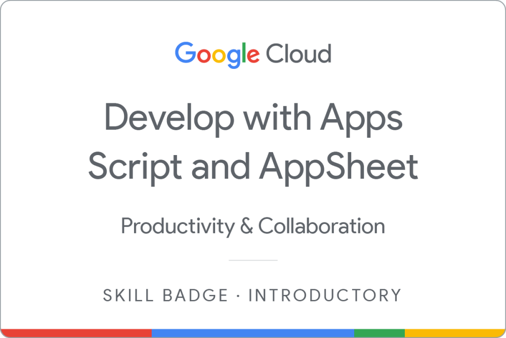 Earn a skill badge by completing the App Building with AppSheet course, where you learn how to build, configure, and publish apps using AppSheet.
