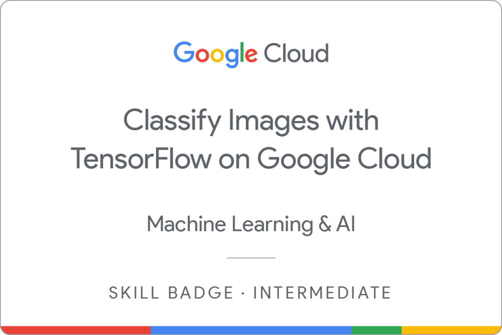 Earn the intermediate Skill Badge by completing the Classify Images with TensorFlow on Google Cloud skill badge course where you learn how to use TensorFlow and Vertex AI to create and train machine learning models. You primarily interact with Vertex AI Workbench user-managed notebooks.