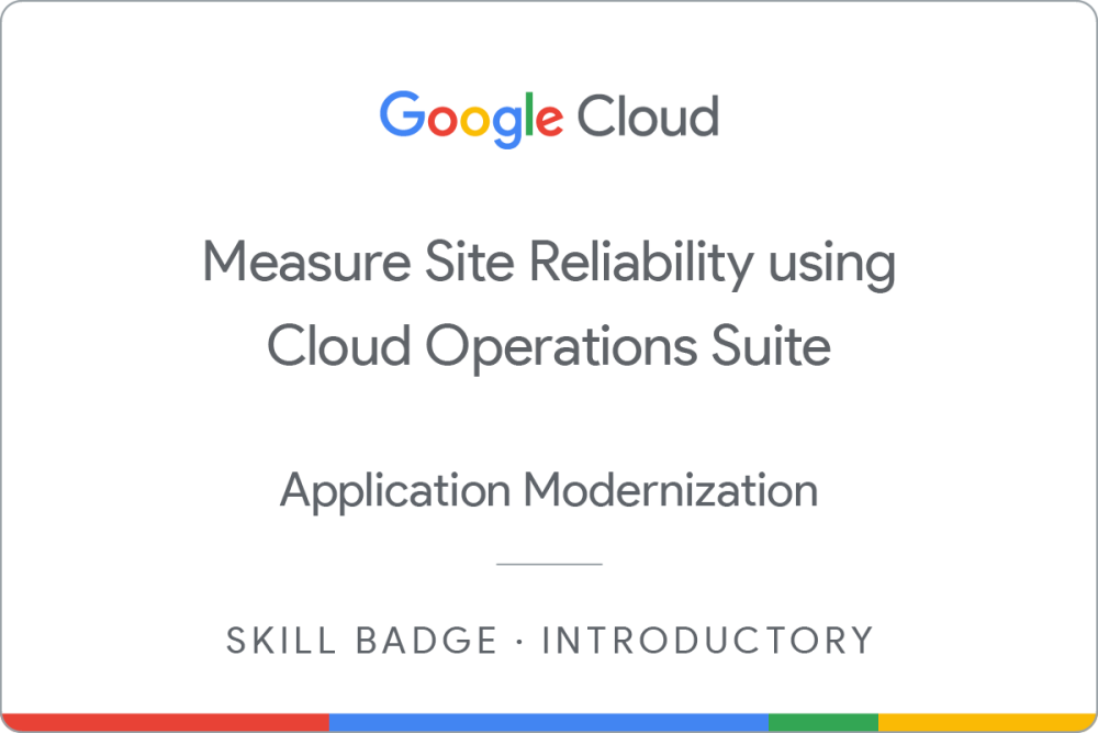 Earn a skill badge by completing the Measure Site Reliability using Cloud Operations Suite quest, where you will learn how to set Service Level Indicators (SLIs), Service Level Objectives (SLOs), and Service Level Agreements (SLAs); create logs-based metrics to capture to capture specific issues and address them; define alerts to notify Site Reliability Engineers of issues in production environment, and troubleshoot application issues with Cloud Trace, Debugger, Profiler, Monitoring and Logging. A skill badge is an exclusive digital badge issued by Google Cloud in recognition of your proficiency with Google Cloud products and services and tests your ability to apply your knowledge in an interactive hands-on environment. Complete this skill badge quest, and the final assessment challenge lab, to receive a skill badge that you can share with your network.