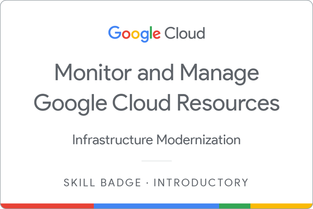 Complete the introductory Monitor and Manage Google Cloud Resources skill badge to demonstrate skills in the following: granting and revoking IAM permissions; installing monitoring and logging agents; creating, deploying, and testing an event-driven Cloud Run function.