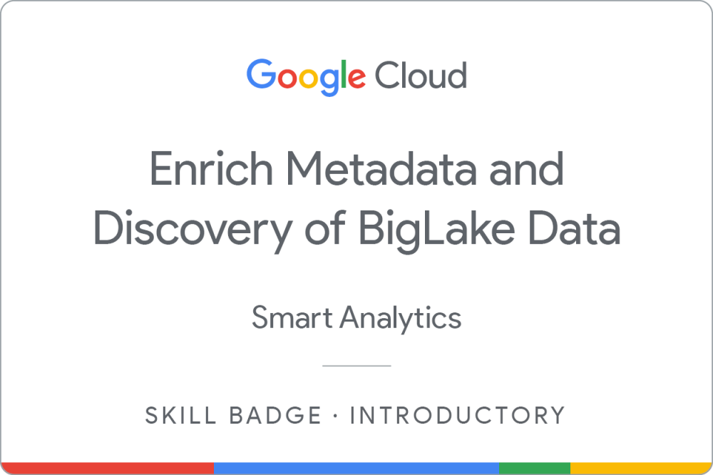 Complete the Enrich Metadata and Discovery of BigLake Data skill badge course to demonstrate skills in BigQuery, BigLake, and Dataplex Universal Catalog. You create BigLake tables and enrich metadata management and discovery of the table data.