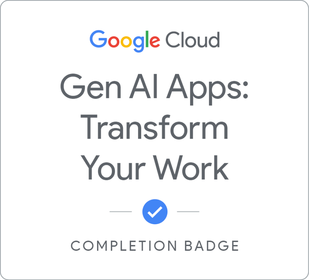 Transform Your Work With Gen AI Apps is the fourth course of the Gen AI Leader learning path. This course introduces Google’s gen AI applications, such as Google Workspace with Gemini and NotebookLM. It guides you through concepts like grounding, retrieval augmented generation, constructing effective prompts and building automated workflows.