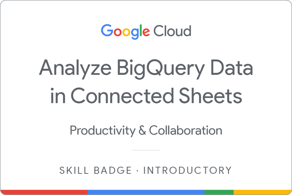 Complete the Analyze BigQuery Data in Connected Sheets skill badge to demonstrate that you can use Connected Sheets to access, analyze, visualize, and share billions of rows of BigQuery data from your Google Sheets spreadsheet.