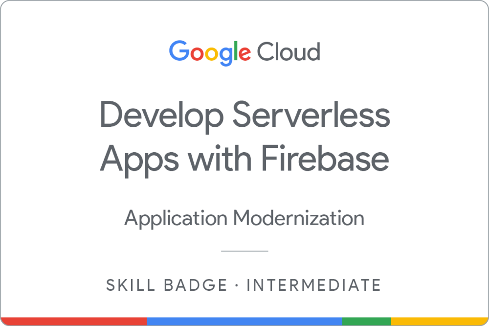 Complete the intermediate Develop Serverless Apps with Firebase skill badge course to demonstrate skills in the following: architecting and building serverless web applications with Firebase, utilizing Firestore for database management, automating deployment processes using Cloud Build, and integrating Google Assistant functionality into your applications.