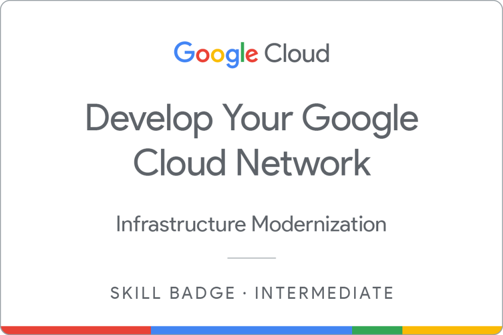 Earn a skill badge by completing the Develop your Google Cloud Network skill badge course, where you learn multiple ways to deploy and monitor applications including how to: explore IAM roles and add/remove project access, create VPC networks, deploy and monitor Compute Engine VMs, write SQL queries, deploy and monitor VMs in Compute Engine, and deploy applications using Kubernetes with multiple deployment approaches.