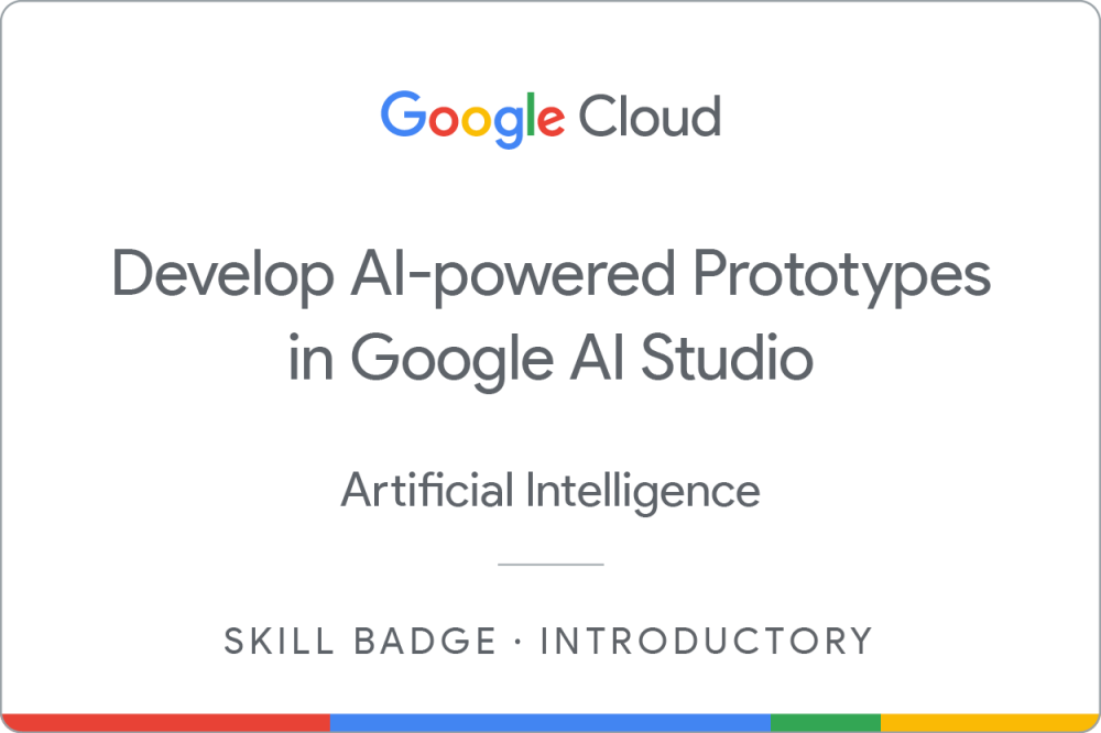 Complete the introductory Develop AI-Powered Prototypes in Google AI Studio skill badge to demonstrate skills in the following: crafting effective prompts, leveraging multimodal capabilities for image and video analysis, prototyping functional AI-driven applications from templates and text prompts, and utilizing API keys to build and deploy custom AI solutions.