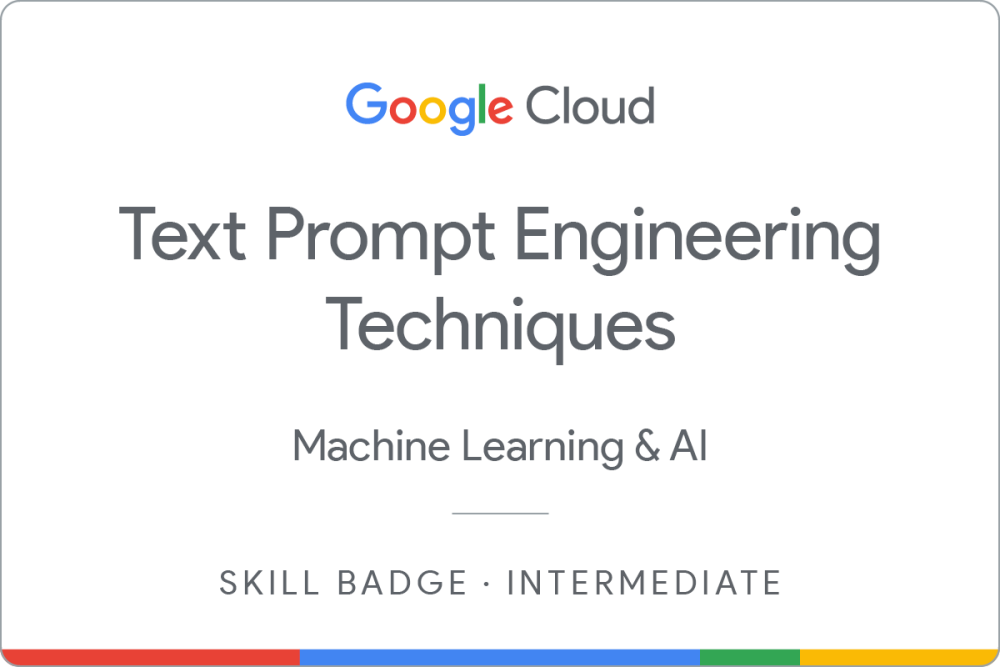 Earn a skill badge by completing the Introduction to Generative AI, Introduction to Large Language Models and Introduction to Responsible AI courses. By passing the final quiz, you'll demonstrate your understanding of foundational concepts in generative AI. A skill badge is a digital badge issued by Google Cloud in recognition of your knowledge of Google Cloud products and services. Share your skill badge by making your profile public and adding it to your social media profile.