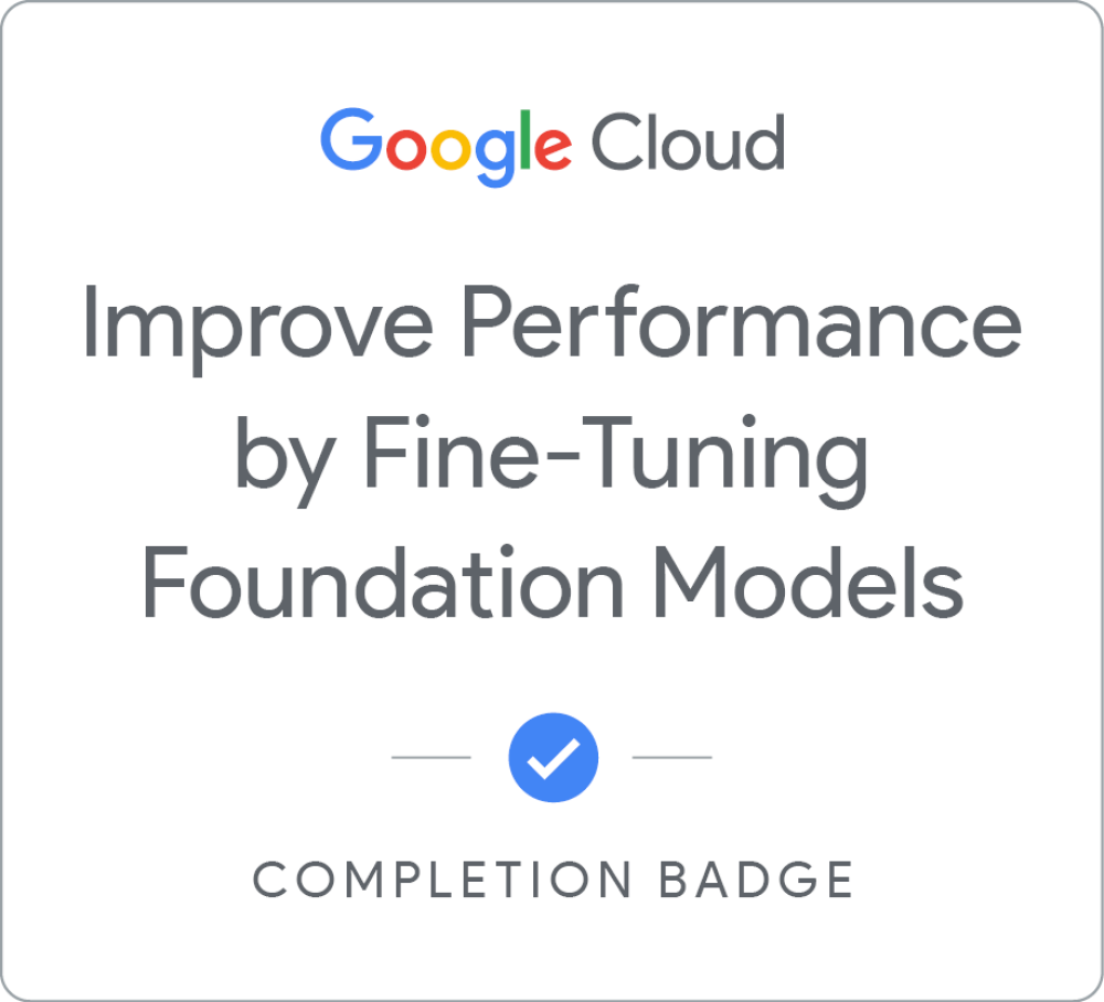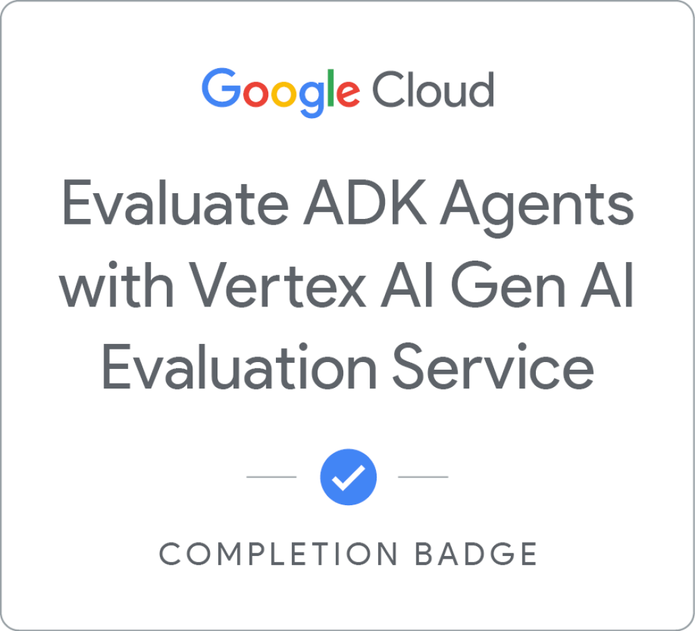 Complete the Evaluate Gen AI model and agent performance skill badge to demonstrate your ability to use the Gen AI evaluation service. You will evaluate models to select the best model for a given task, compare models against each other and evaluate the performance of agents. A skill badge is an exclusive digital badge issued by Google Cloud in recognition of your proficiency with Google Cloud products and services and tests your ability to apply your knowledge in an interactive hands-on environment. Complete the assessment challenge lab, to receive a skill badge that you can share with your network. When you complete this course, you can earn the badge displayed here and claim it on Credly! Boost your cloud career by showing the world the skills you have developed!