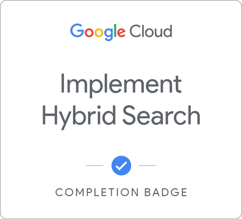 Complete the Configure AI Applications to optimize search results skill badge to demonstrate your proficiency in configuring search results from AI Applications. You will be tasked with implementing search serving controls to boost and bury results, filter entries from search results and display metadata in your search interface. Please note that AI Applications was previously named Agent Builder, so you may encounter this older name within the lab content. A skill badge is an exclusive digital badge issued by Google Cloud in recognition of your proficiency with Google Cloud products and services and tests your ability to apply your knowledge in an interactive hands-on environment. Complete the assessment challenge lab, to receive a skill badge that you can share with your network. When you complete this course, you can earn the badge displayed here and claim it on Credly! Boost your cloud career by showing the world the skills you have developed!