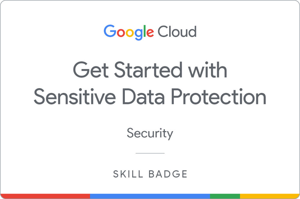 Complete the introductory Get Started with Sensitive Data Protection skill badge course to demonstrate skills in the following: using Sensitive Data Protection services (including the Cloud Data Loss Prevention API) to inspect, redact, and de-identify sensitive data in Google Cloud.