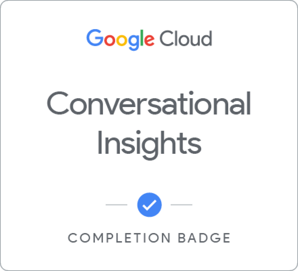 Complete the Analyze patterns in conversational data with Customer Experience Insights skill badge to demonstrate your proficiency in analysing customer conversations with Cx Insights. After completing this challenge, you will be ready to deploy Cx Insights to improve customer service performance, and create better customer experiences. A skill badge is an exclusive digital badge issued by Google Cloud in recognition of your proficiency with Google Cloud products and services and tests your ability to apply your knowledge in an interactive hands-on environment. Complete the assessment challenge lab, to receive a skill badge that you can share with your network. When you complete this course, you can earn the badge displayed here and claim it on Credly! Boost your cloud career by showing the world the skills you have developed!