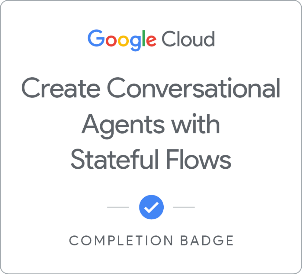 Complete the Build basic Conversational Agents with Playbooks and Flows skill badge to demonstrate your proficiency in building virtual agents using traditional NLU and generative-based features. A skill badge is an exclusive digital badge issued by Google Cloud in recognition of your proficiency with Google Cloud products and services and tests your ability to apply your knowledge in an interactive hands-on environment. Complete the assessment challenge lab, to receive a skill badge that you can share with your network. When you complete this course, you can earn the badge displayed here and claim it on Credly! Boost your cloud career by showing the world the skills you have developed!