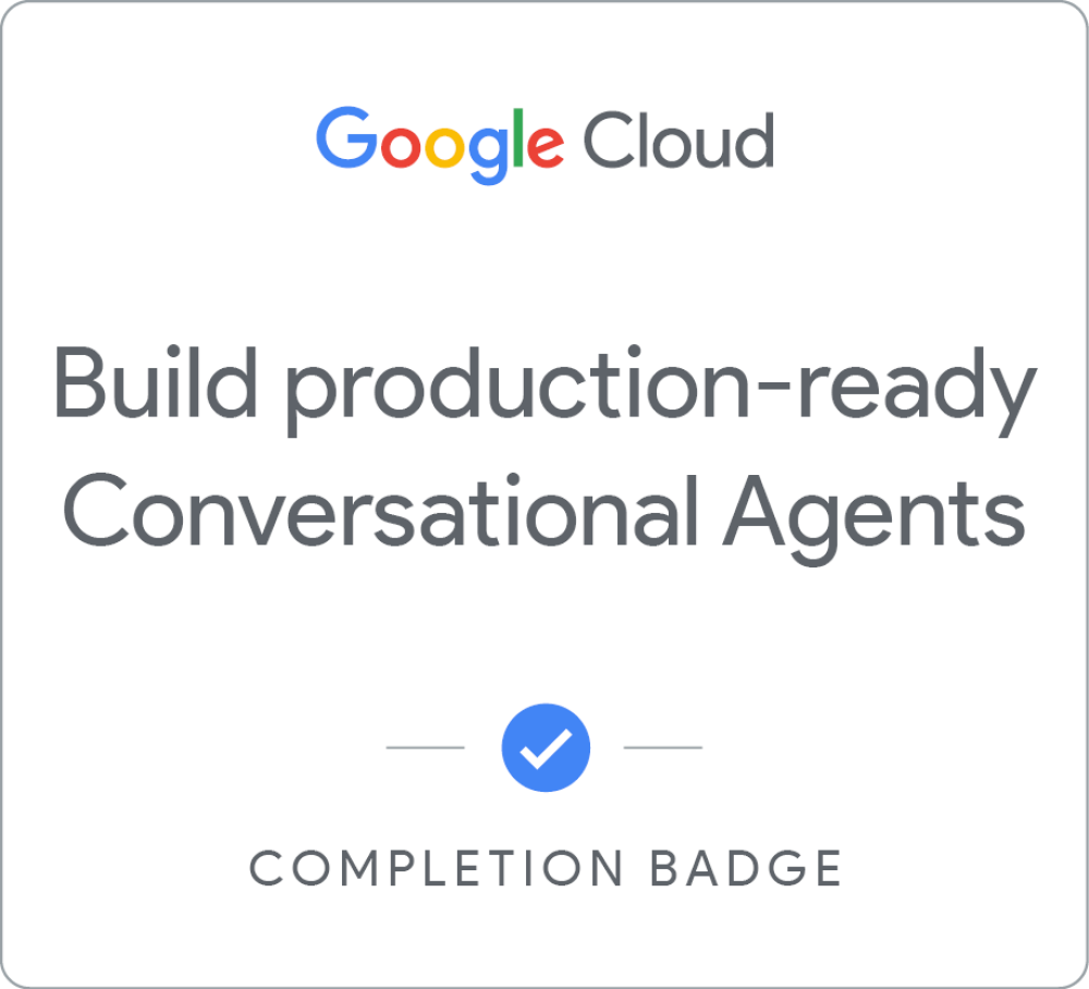 Complete the Leverage best practices for developing, operating, and securing production-grade Conversational Agents skill badge to demonstrate your ability to implement a variety of best practices around development, deployment, and security. These will include: Using versions and environments, backing up with Git integration, leveraging test cases and CI/CD testing, tracking conversations with conversation history and logging, redacting data, and securing acceess to agent and webhook endpoints. A skill badge is an exclusive digital badge issued by Google Cloud in recognition of your proficiency with Google Cloud products and services and tests your ability to apply your knowledge in an interactive hands-on environment. Complete the assessment challenge lab, to receive a skill badge that you can share with your network. When you complete this course, you can earn the badge displayed here and claim it on Credly! Boost your cloud career by showing the world the skills you have develope…