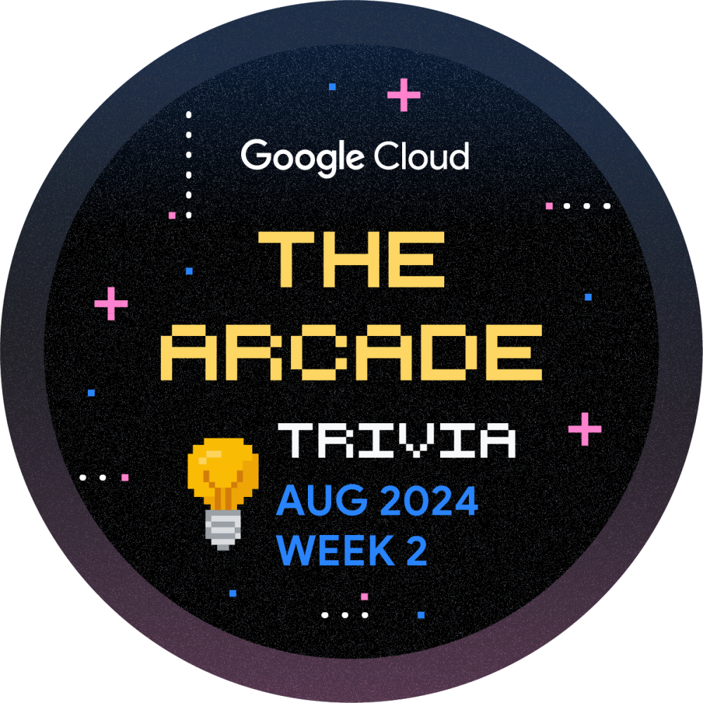 Hey there! You're invited to game on with Skills Boost Arcade Trivia for August Week 2! Play throughout the month and boost your cloud learning journey. Every week, we'll release a new set of questions to test your knowledge of Google Cloud Platform. Get started now and earn the August Trivia Week 2 badge!