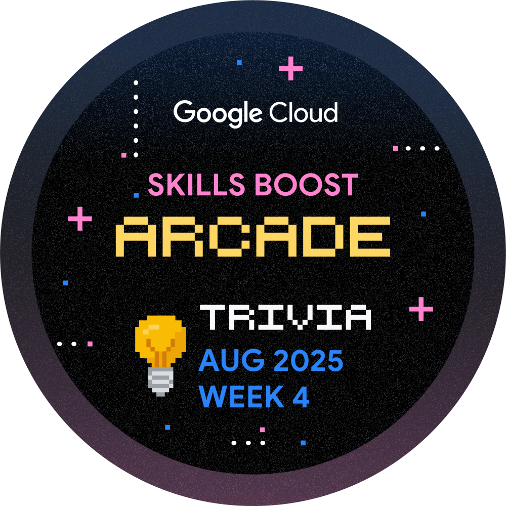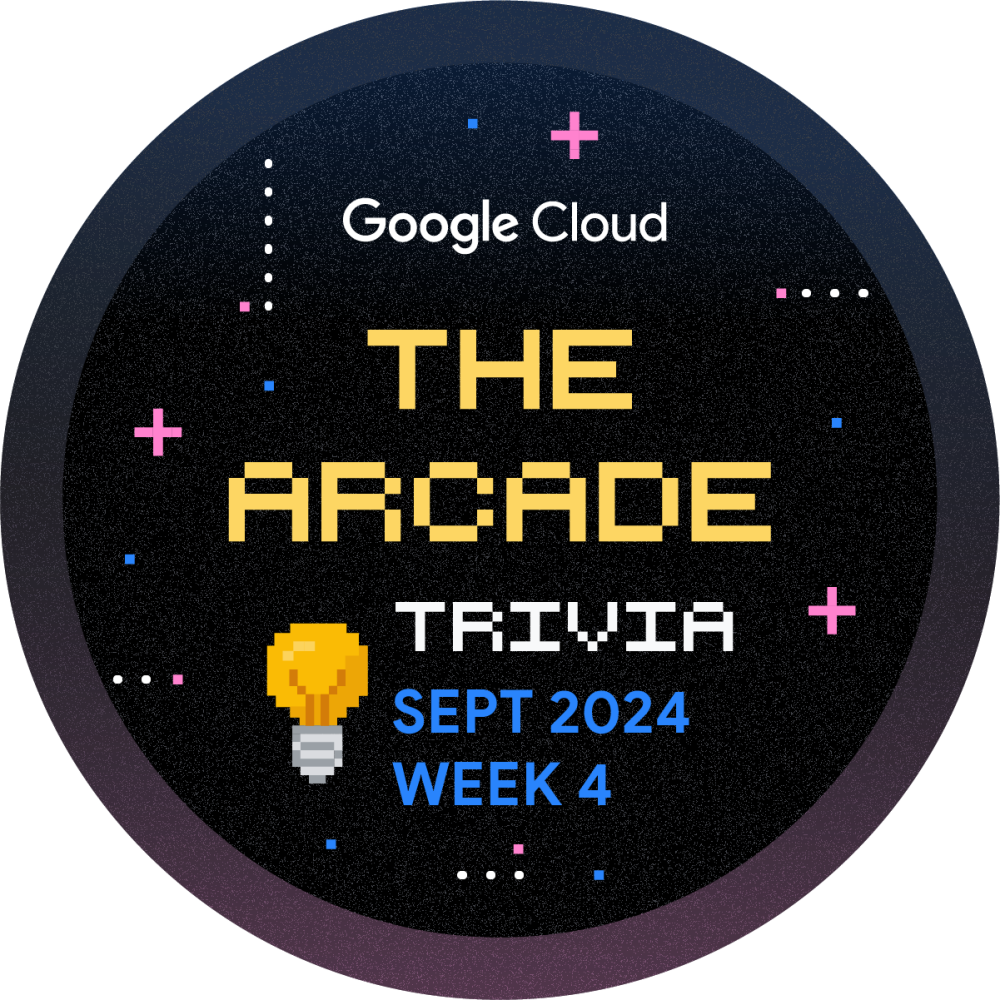 Olá! Você está convidado a participar do Arcade Trivia para a Semana 4 de Setembro. Jogue durante todo o mês e aprimore sua jornada de aprendizado na nuvem. Toda semana, lançaremos um novo conjunto de perguntas para testar seu conhecimento sobre a Plataforma Google Cloud. Comece agora mesmo e ganhe a insígnia de Trivia de Setembro, Semana 4!