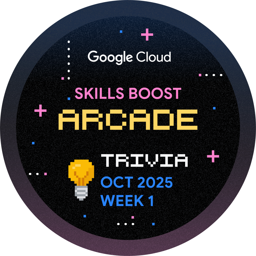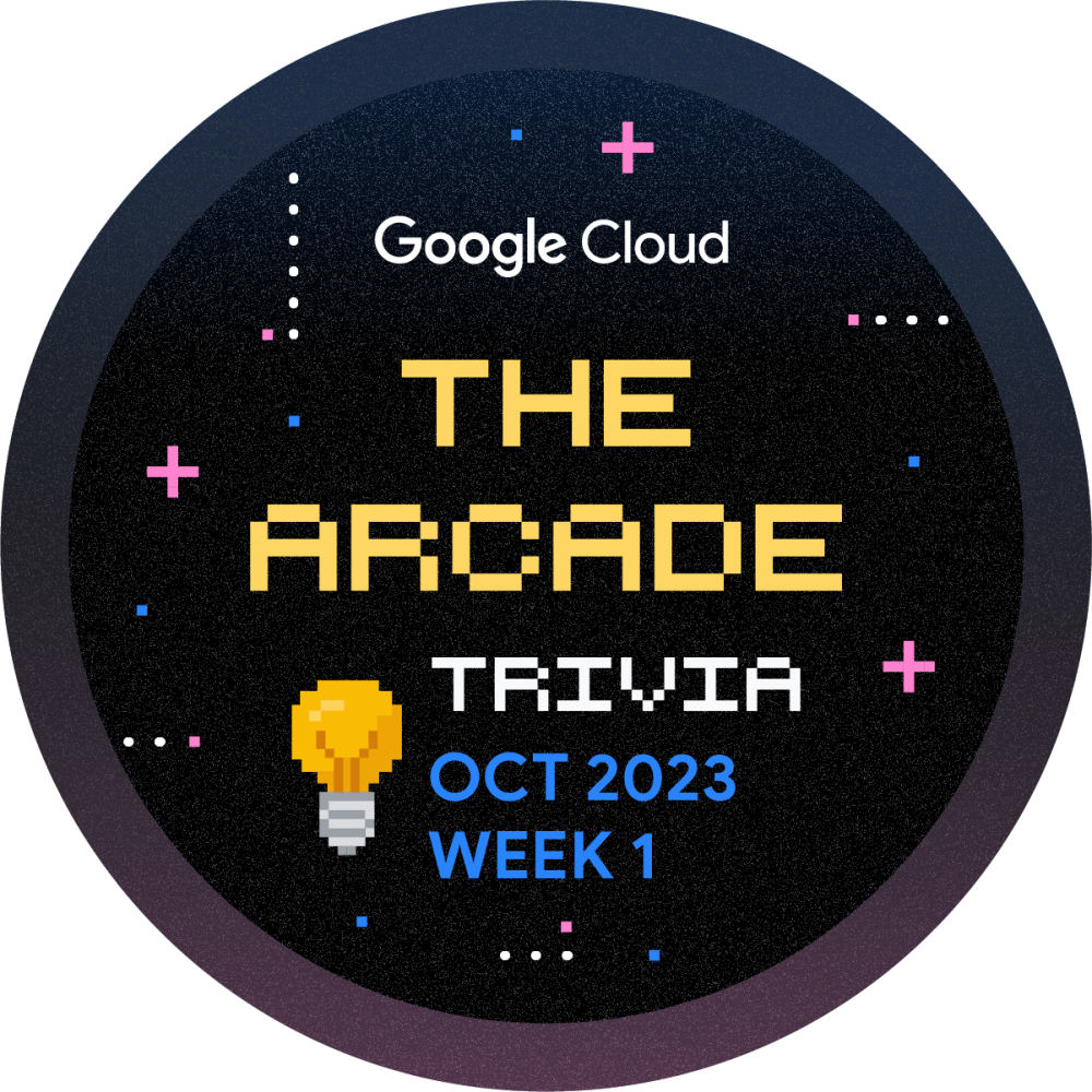 Olá! Você está convidado a participar do Arcade Trivia para a Semana 1 de Outubro. Jogue durante todo o mês e aprimore sua jornada de aprendizado na nuvem. Toda semana, lançaremos um novo conjunto de perguntas para testar seu conhecimento sobre a Plataforma Google Cloud. Comece agora mesmo e ganhe a insígnia de Trivia de Outubro, Semana 1!