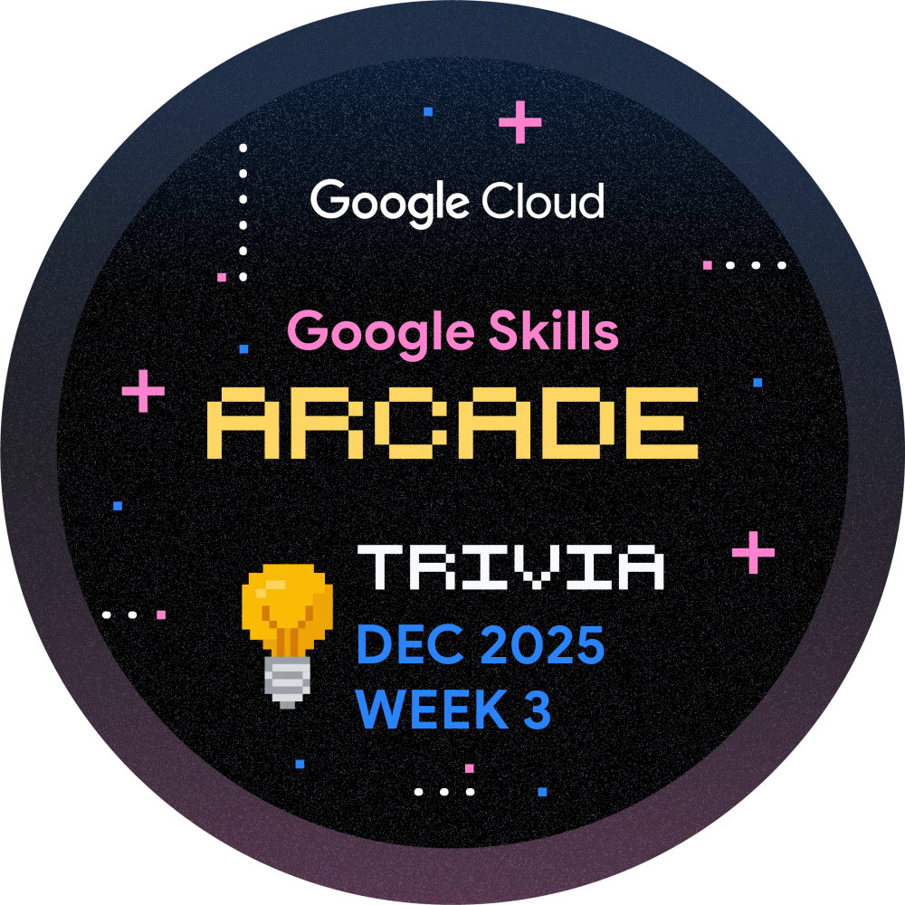 Olá! Você está convidado a participar do Arcade Trivia para a Semana 3 de Dezembro. Jogue durante todo o mês e aprimore sua jornada de aprendizado na nuvem. Toda semana, lançaremos um novo conjunto de perguntas para testar seu conhecimento sobre a Plataforma Google Cloud. Comece agora mesmo e ganhe a insígnia de Trivia de Dezembro, Semana 3!