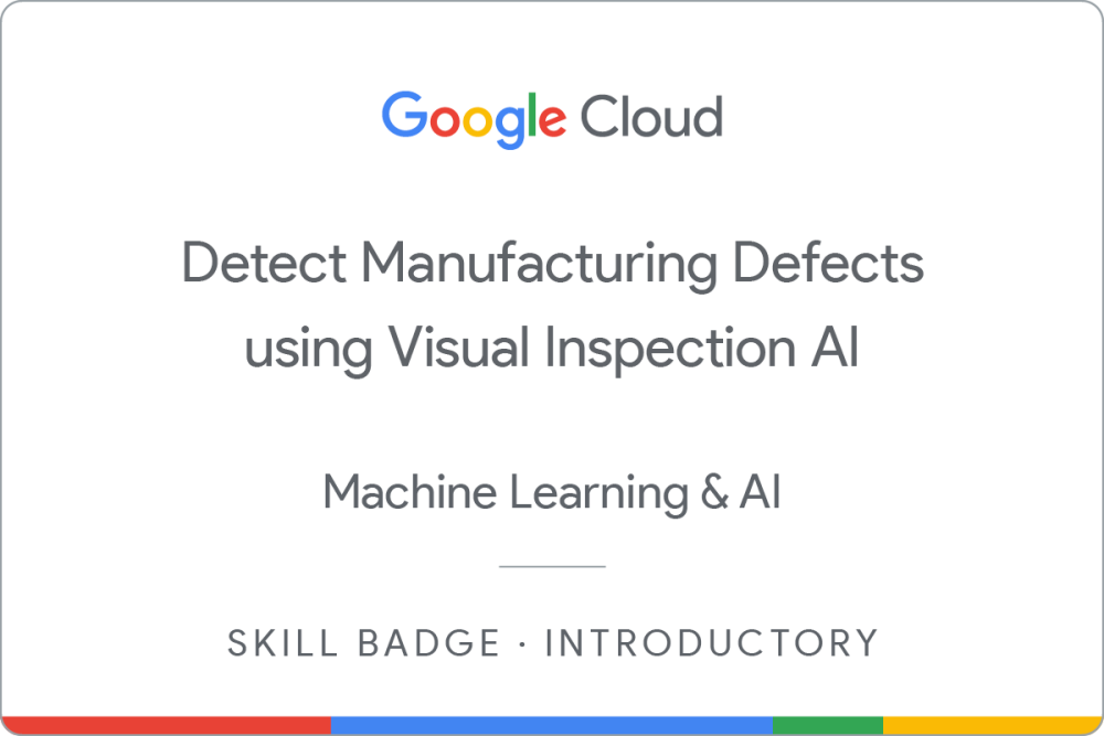 Earn a skill badge by completing the Detect Manufacturing Defects using Visual Inspection AI course, where you learn how to use Visual Inspection AI to deploy a solution artifact and test that it can successfully identify defects in a manufacturing process.
