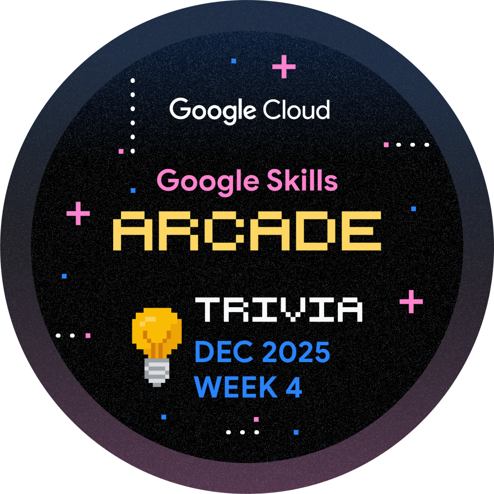 Olá! Você está convidado a participar do Arcade Trivia para a Semana 1 de Dezembro. Jogue durante todo o mês e aprimore sua jornada de aprendizado na nuvem. Toda semana, lançaremos um novo conjunto de perguntas para testar seu conhecimento sobre a Plataforma Google Cloud. Comece agora mesmo e ganhe a insígnia de Trivia de Dezembro, Semana 1!