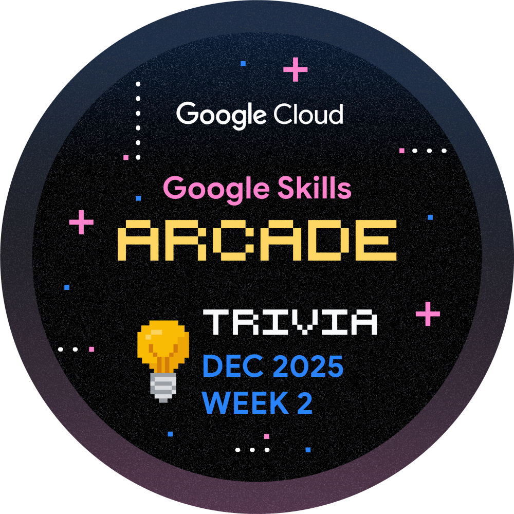 Olá! Você está convidado a participar do Arcade Trivia para a Semana 2 de Dezembro. Jogue durante todo o mês e aprimore sua jornada de aprendizado na nuvem. Toda semana, lançaremos um novo conjunto de perguntas para testar seu conhecimento sobre a Plataforma Google Cloud. Comece agora mesmo e ganhe a insígnia de Trivia de Dezembro, Semana 2!