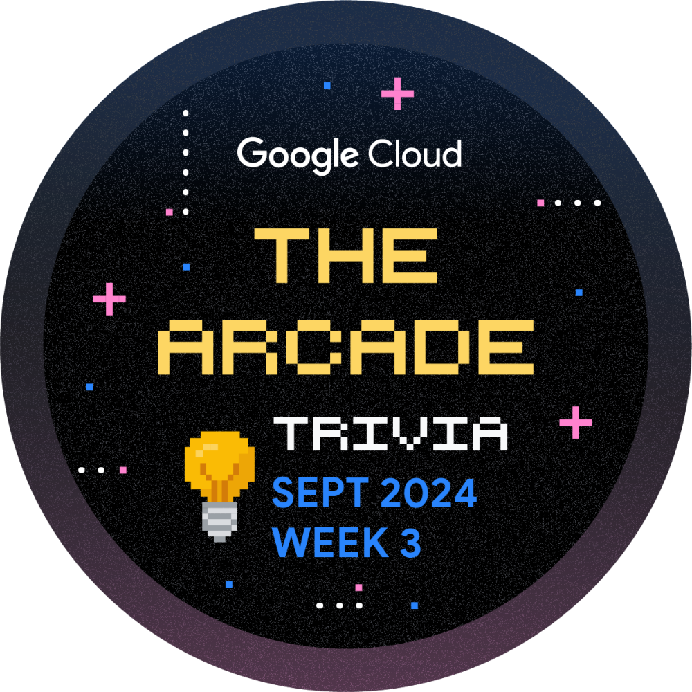 Olá! Você está convidado a participar do Arcade Trivia para a Semana 3 de Setembro. Jogue durante todo o mês e aprimore sua jornada de aprendizado na nuvem. Toda semana, lançaremos um novo conjunto de perguntas para testar seu conhecimento sobre a Plataforma Google Cloud. Comece agora mesmo e ganhe a insígnia de Trivia de Setembro, Semana 3!